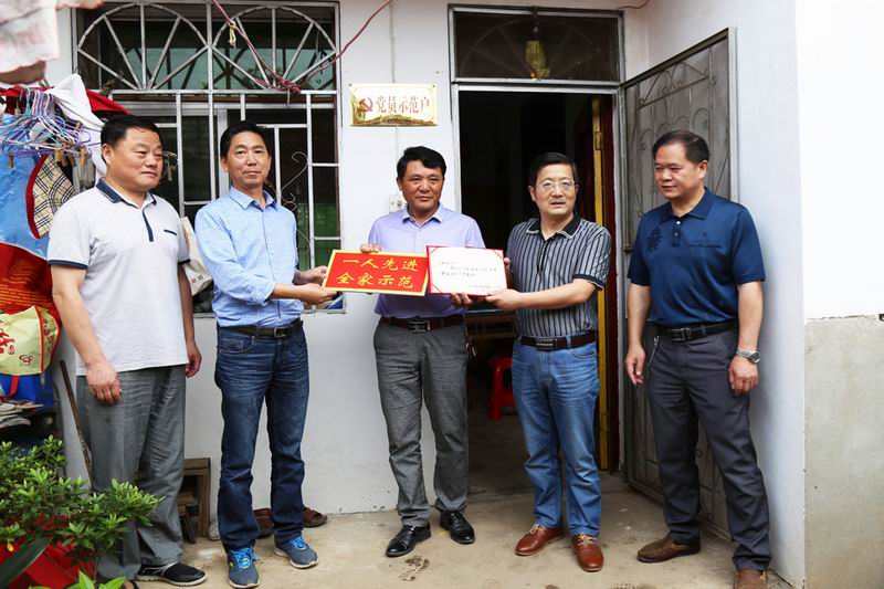 在安徽农垦华阳河农场,以往参军入伍家庭挂有光荣之家牌匾,体现一人参军、全家光荣的内涵;如今基层党员家庭也亮出了党员示范户的身份,意在彰显一人是党员、全家作示范正能量。616,农场党委书记王洪前往华阳河二场华丰、华兴两个管区为党员示范户家庭授牌。